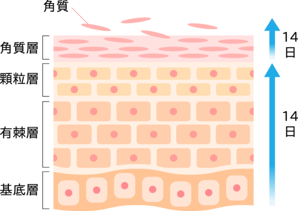 肌の表面は『角質層が出来てから28日目』に剥がれて落ちますから、
